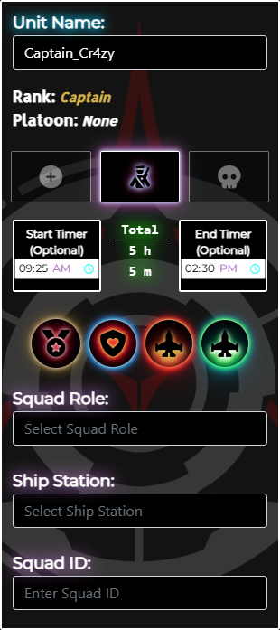 As the name suggests, these platoons have a chosen ship/vehicle with a primary focus on elements of Stealth. Often these Platoons will utilize a carrier ship, housing/transporting stealth fighters & bombers, along with their pilots.