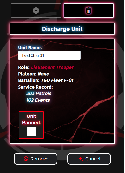 Warning: Unit Ban will place the Member on a permanent black list, preventing any future applications back into The Galactic Order. Perform this action ONLY when a member is kicked from the Discord & Official RSI Org.