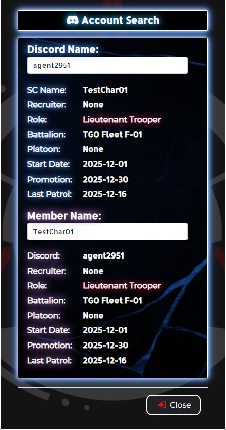 When a member has left the org by choice, they are Honorably Discharged which seals their record and completely removes them from the Full Roster. When an honorably Discharged member returns, they must re-submit an Application on the RSI Site and follow the necessary steps as if joining the org for the first time, creating an entirely new Unit Record.